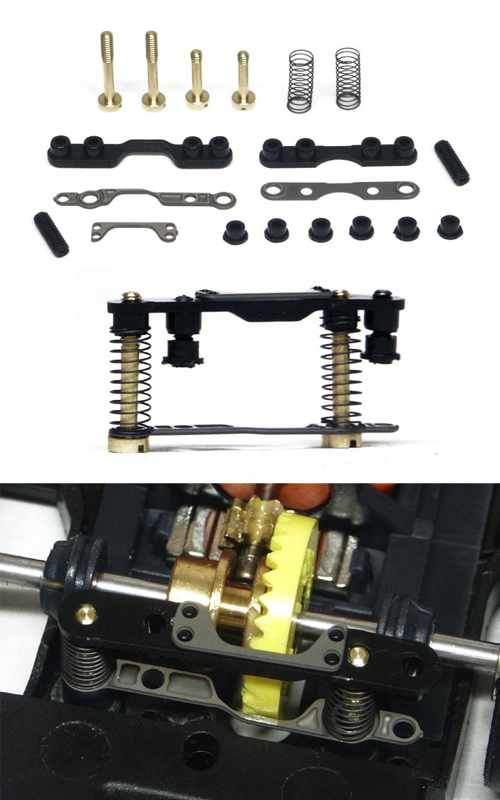 Il kit Slot.it completo è per la configurazione AW e non per la InLine, ma puoi comunque utilizzarlo eliminando la travera superiore e utilizzando solamente i bicchierini. Il problema, però, è che per regolare le sospensioni dovrai rimuovere ogni volta la carrozzeria.
