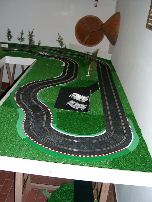 Complimenti per l'ottima realizzazione.....per essere la prima devo dire che è veramente un'ottima realizzazione. Anche se i cordoli sono stretti, l'erba permette alle vetture di scodare senza dare problemi. Vedrai che si colora di nero anche l'erba, dando un bell'effetto "vissuto" alla pista
