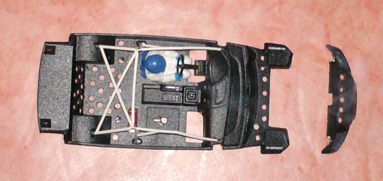 95,86 KB Dall'abitacolo ho estratto il nav e, tanto per divertirmi, ho sforacchiato pianale e supporto fari. Dal telaio ho eliminato sospensioni e relativi attacchi. I supporti delle bronzine sono molto stretti e ovalizzati per cui ho montato dietro due boccole Carrera e davanti due boccole doppie in plastica Scalextric (così davanti ho il distanziale incorporato ), incollandole tutte quattro in posizione alta per abbassare la macchina. Il motore in linea sarà un NC6 (adesso non c'è, sono rimasto senza), corona seria e ruote Prorace, ovviamente rinunciando alla doppia trazione. La Focus, per ora, è così: