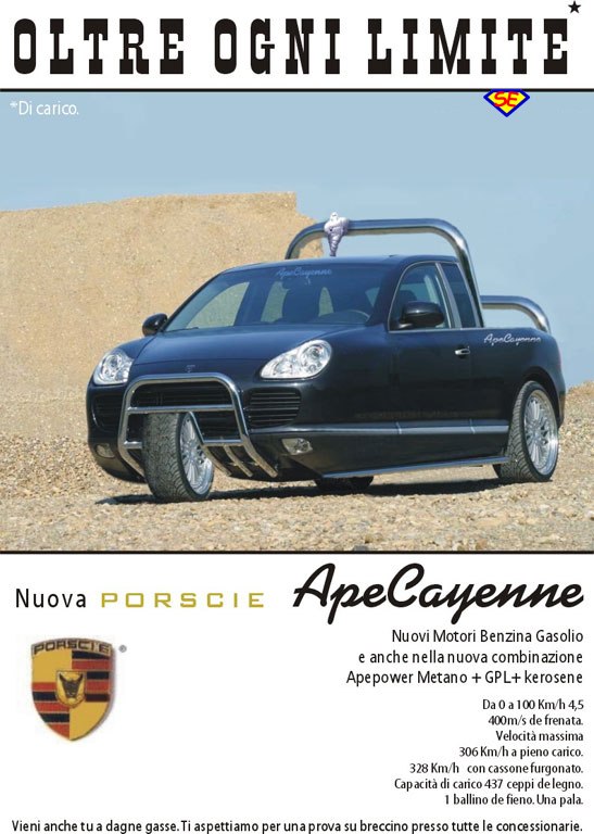 Contemporaneamente vi invio la locandina pubblicitaria di un tale che commercializza "SUV" ecologici, così facciamo contento anche Mtechnic...