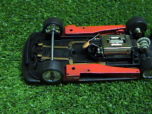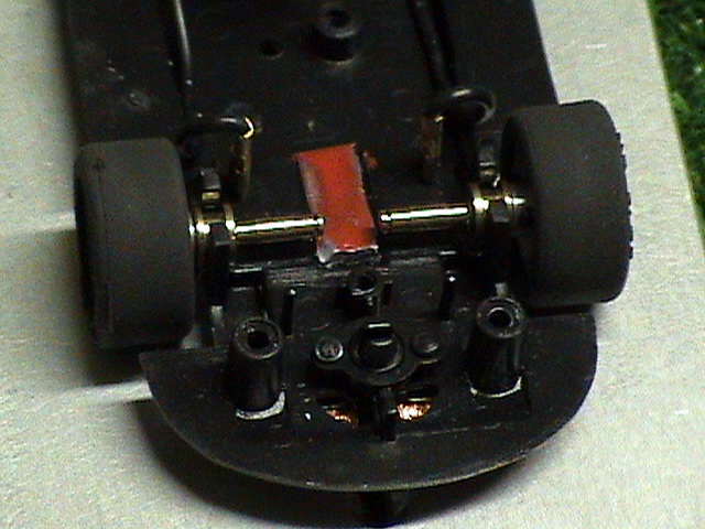 L'assale originale, dal peso di 1,6 gr., è stato quindi sostituito con i semiassi MB Slot che invece pesano 1,2 gr. , la scelta di questo prodotto è stata data non solo dal punto di vista dell'alleggerimento, ma anche dal fatto che le ruote anteriori indipendenti migliorano effettivamente l'inserimento in curva del modello ed il suo scorrimento.