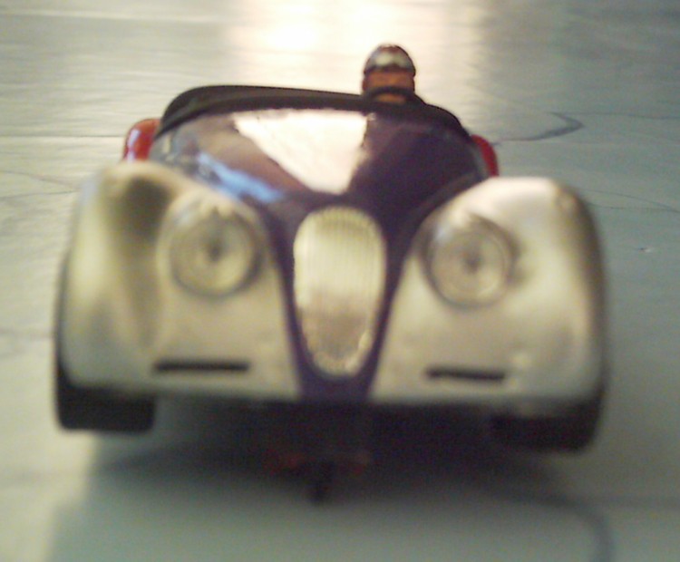 Nel 1995 casualmente vidi in un garage, pronta per il restauro, una Jaguar mk 120 di provenienza olandese alla quale avevano appena tolte le bandiere britanniche, adesive, dai cofani. Quello che era rimasto mi ha segnato indelebilmente...  L'ho rifatta così, su base Ninco: