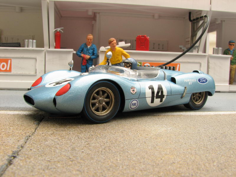 Ce l'avevo negli anni '70, Monogram. Il telaio slot originale era fornito a parte e, non trovandolo, me lo ero fatto in lamiera di ottone, montando un Mabuchi FT16 e gomme in spugna. Per la cronaca la macchina è fatta in due gusci e la meccanica va inserita all'interno. Per farci stare il motore avevo forato il guscio inferiore e per farci stare le gomme in spugna avevo aperto i parafanghi... raggelante, vero, alla luce delle disposizioni moderne.