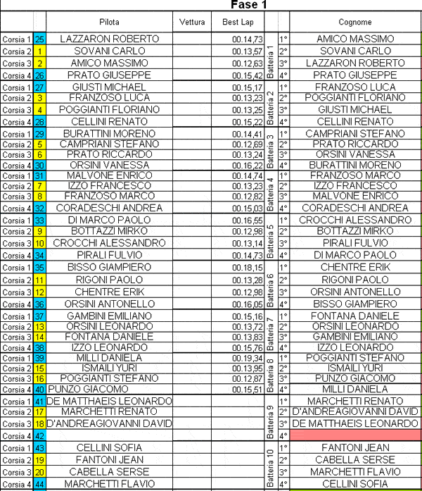 Semifinali. Quì si da il tutto per tutto. I posti in finale sono quattro. Riservati ai migliori due di ogni semifinale. L'impegno nella guida si traduce in cronche delle gare molto seguite e animate. In queste manches ogni errore si paga caro e solo i migliori, quelli che non sbagliano passano in finale. Questa volta sono due i piloti ad emergere dalle corsie esterne: Mirko Bottazzi e Luca Franzoso, che giungono secondi nelle semifinale vinte da Stefano Campriani e Marco Franzoso. Altra riflessione che sorge spontanea: Luca Franzoso dal ripescaggio della Fase 3 a protagonista della finalissima. Ancora un segno tangibile di come il regolamento premi effettivamente i migliori. Stai a vedere che insieme a Francesco Izzo siamo riusciti a coniare un bel regolamento sportivo? Sarete voi a dircelo. Sul forum.