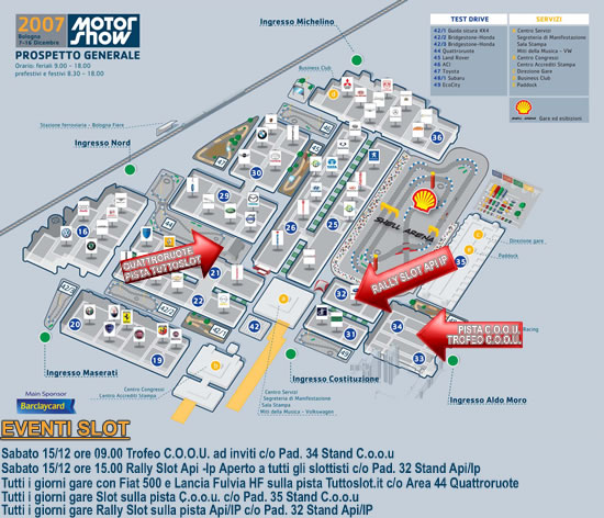 Per rendervi più pratica la visita al motorshow ho preparato la cartina del motorshow evidenziando i punti di maggior interesse per voi slottisti.