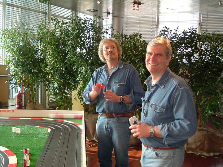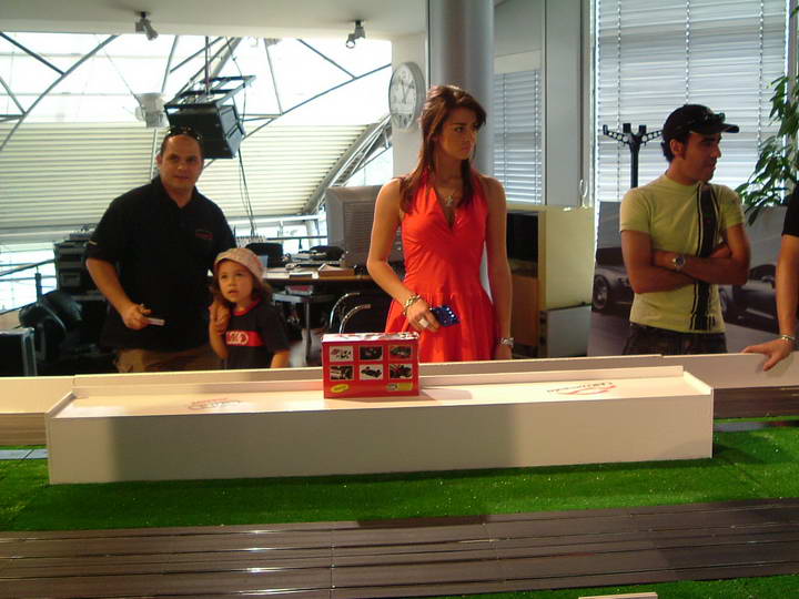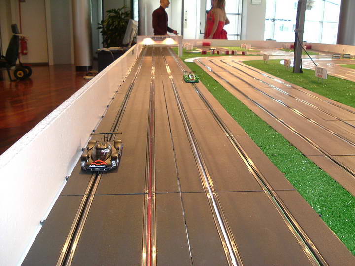 Ma veniamo alla mattinata di gara. Manca ancora un po' alle 9 del mattino e già scorgo fuori dalla concessionaria Negrinik e Louboyle. Un piacere rivedere Domenico e finalmente conoscere di persona Lou. Ma subito dopo arrivano tutti gli altri, che iniziano a provare la pista. Dagli sguardi vedo che tutti sono venuti per una sana mattinata di slot e con la scusa fare la conoscenza di altri nostri amici del forum.
