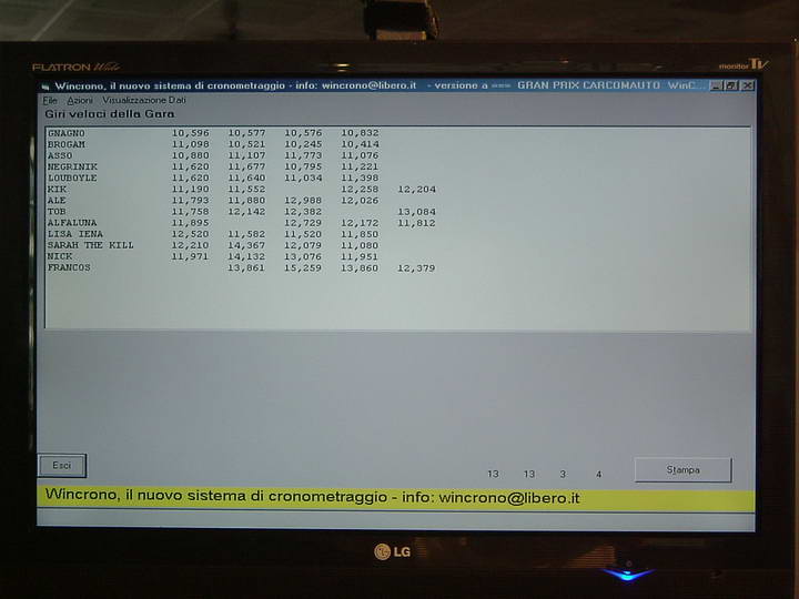 Faccio click sul computer e WINCRONO stila subito le classifiche: