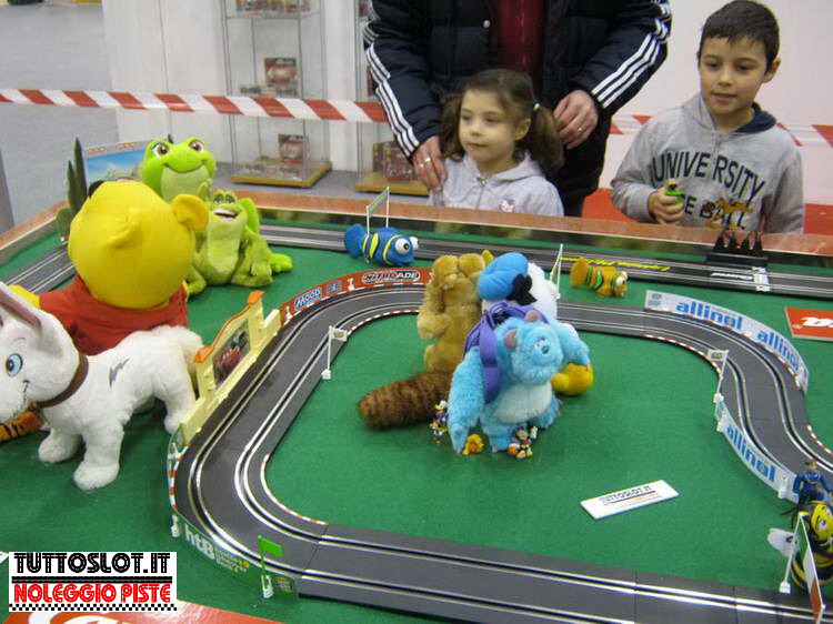 Per l'occasione ci forniva la pista 1:43 che è stata utilizzata, per la delizia dei più piccoli.... ma anche di molti papà, nello spazio dedicato ai bambini più piccoli. La Carrera Go!! in scala 1:43 si è rivelata ottima nella giocabilità, nel risparmio di spazio e nell'attrattiva sui bambini... ma anche sui più grandi, grazie anche ai molti accessori di abbellimento che forniscono di serie, uniti allo straordinario abbellimento creato dal nostro staff e precisamente da Ines.