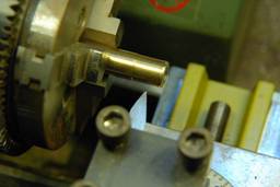 Per ottenere ciò bisogna posizionare all'altezza giusta l'utensile nel morsetto, ponendo sotto alla barretta una piattina di metallo di spessore adeguato (qui un paio di mm).