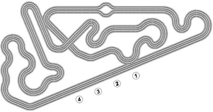 La pista utilizzata per l’occasione e purtroppo probabilmente anche per l’ultima volta … le ultime notizie danno infatti il club in smobilitazione … è quella corta da 28 mt con la particolarità che ad un certo punto del tracciato le corsie di gara si riducono tramite una strettoia da 8 a 4 … quindi chi è davanti entra per primo, chi segue deve accodarsi e tentare poi il sorpasso nel successivo rettilineo … naturalmente chi tampona l’avversario è soggetto inizialmente alla sola ammonizione verbale … al secondo “ colpo “ penalità di 2 giri … al terzo “ colpo “ 5 giri di penalità e via in crescendo, ma nonostante i timori di chi come noi sperimentava per la prima volta il sistema tutto è però poi filato via liscio e che mi ricordi io il solo lanciatissimo Jack ha ricevuto un ammonizione verbale per una involontaria tamponata ai danni di Valentino che però procedeva ad andatura turistica.