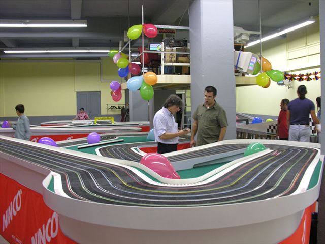 Per poi avere voluto a tutti i costi una pista ovale da 6 corsie lunga 26 metri per provale l'ebrezza della velocità pura!!! esperimento, a mio modesto parere più che riuscito, vista l'affluenza su tale tracciato. nelle immagini dello slide show che seguirà più avanti vedrete "bei" personaggi dello slot cimentarvisi.