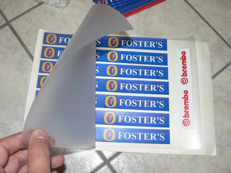 Le decorazioni con gli sponsor che si vogliono utilizzare devono essere ritagliate nella forma definitiva. Se per esempio avete un foglio A4 e avete delle strisce, ritagliatele fino a togliere tutta la parte bianca.