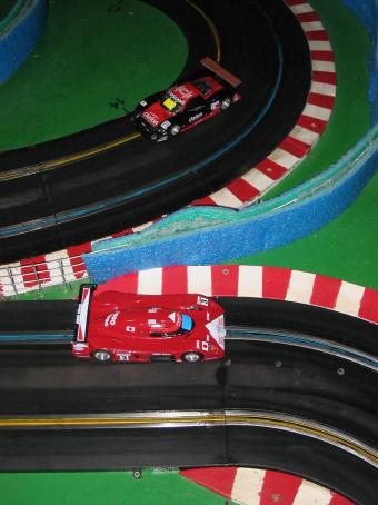 Sono tutti frastornati e a bocca aperta, quando si è pronti per dare il via alla seconda batteria, di scena due Porsche 962, sono quelle di Castiglione Melina e Gammicchia, uguali anche nella colorazione. La prima approfitta dell’assenza del fratello Piero, per abbandonare la Mosler NSR e ritornare a gareggiare con una Slot it. La vettura messa a punto dalle sapienti mani di “Giuili” le permette di sentirsi a proprio agio, e il decimo tempo più veloce realizzato in gara lo conferma, ma qualche uscita di troppo, in particolare nella corsia gialla, la relega al 12esimo posto. E’ comunque la sua migliore prestazione assoluta, oltrepassa la soglia dei 40 giri compiuti, che mai prima d’ora era riuscita a raggiungere. Pure il piccolo Riccardo ottiene il suo miglior risultato in assoluto, maturato anche grazie alle poche presenze in questa gara, alla sua terza partecipazione si è classificato al 13esimo posto. In sé un risultato non eclatante, ma sicuramente positivo considerato l’assoluta mancanza d’allenamento. Partecipare ad una gara effettuando solamente cinque minuti di prove prima della partenza è difficile per chiunque. Ricky è stato bravo nel girare senza commettere troppi errori ed è riuscito addirittura nell’intento di lasciarsi alle spalle ben 3 concorrenti, emulando le gesta di un certo Pasqual Fabre che correva in F.1 con la AGS, il quale andava piano ma arrivava.